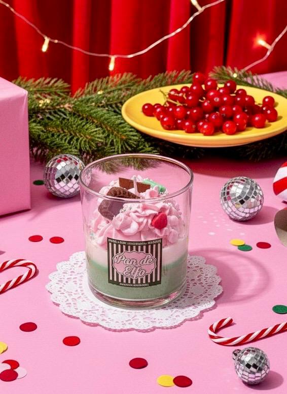 Este formato de 700 ml viene en un jarrón de vidrio decorado con una crema hecha con manga pastelera de cera, tan bonita que parece un postre (pero no se come, aunque te dé antojo).